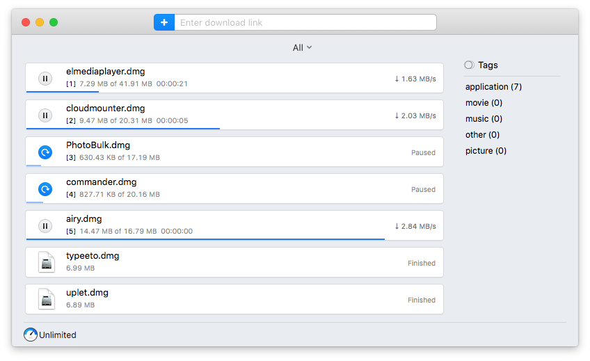 Managing downloads is a tough job but with Folx you can manage all your downloads by separating them with tags. Tags help the users to distinguish between different file types for example if you have downloaded a bulk of stock images and a video file, but to find that video file in that bulk might sound tough to you but with Folx you can just switch to the Video tag and find your file easily.